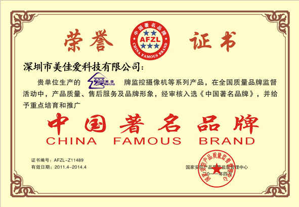 中國(guó)著名品牌證書副本